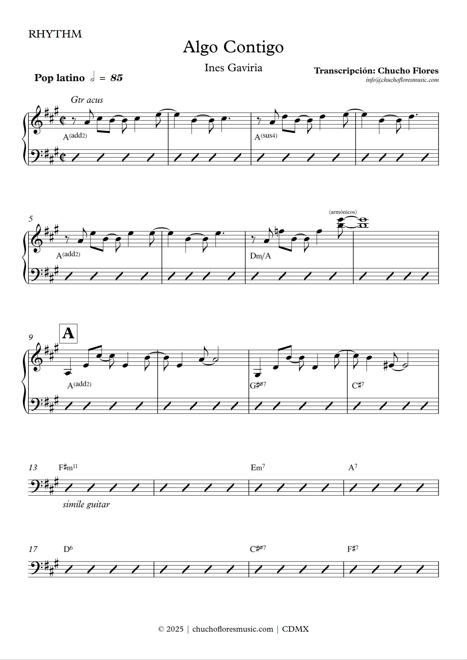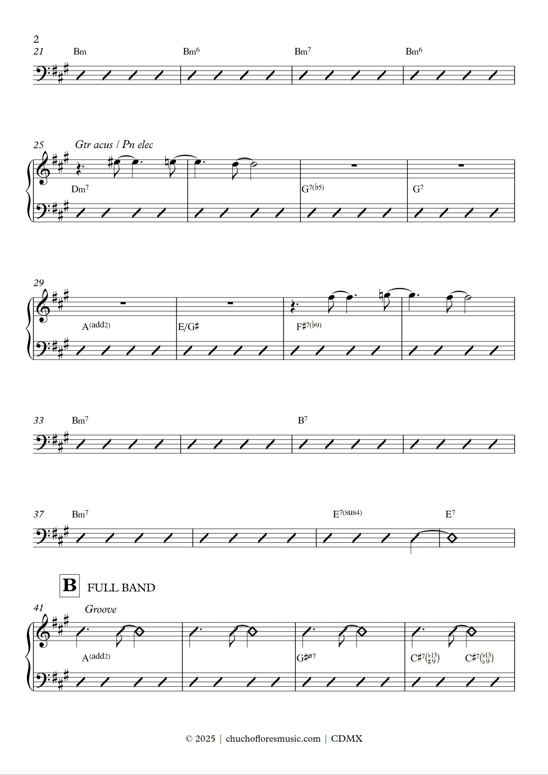 ACORDES + Gtr acus (líneas melódicas) + Pn elec (líneas melódicas) + Bajo y batería (Indicaciones)