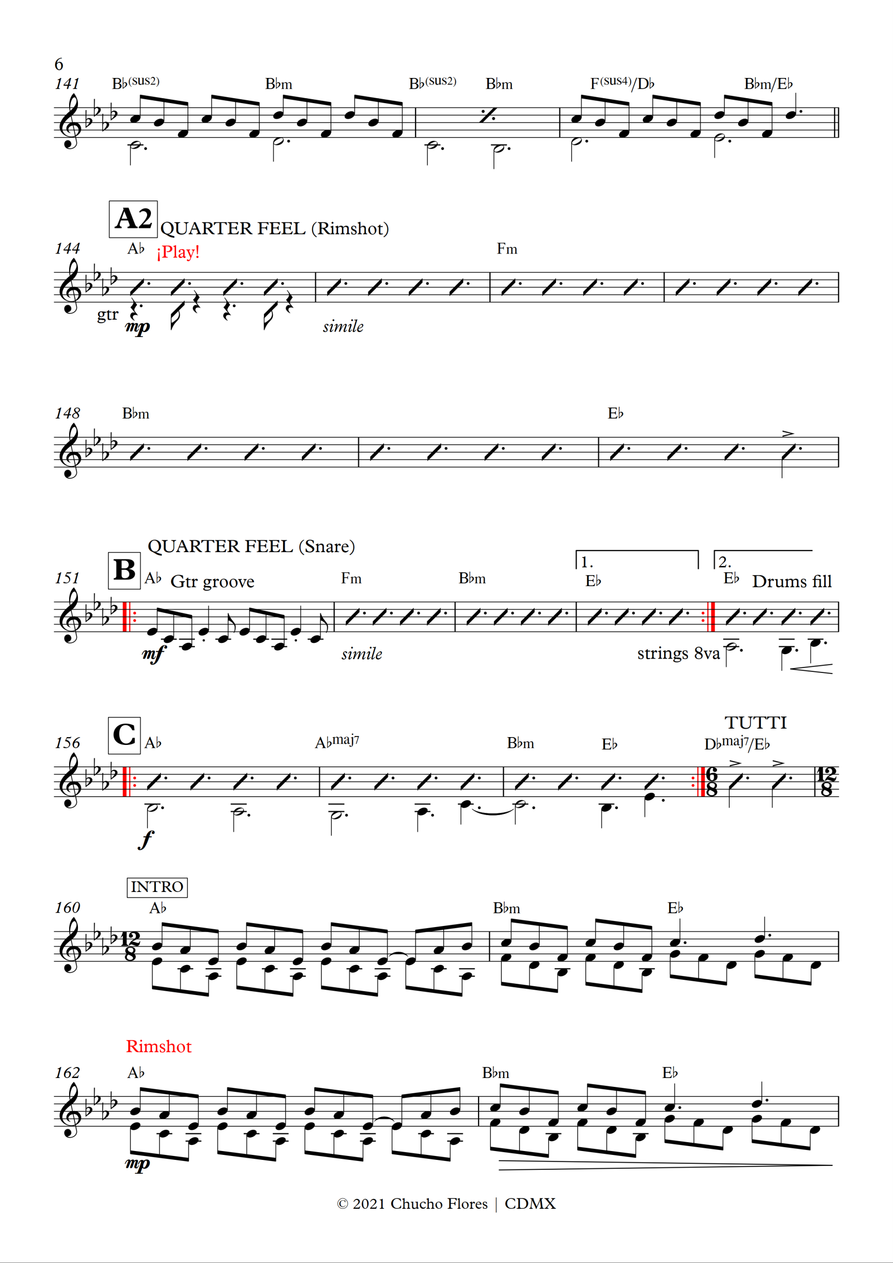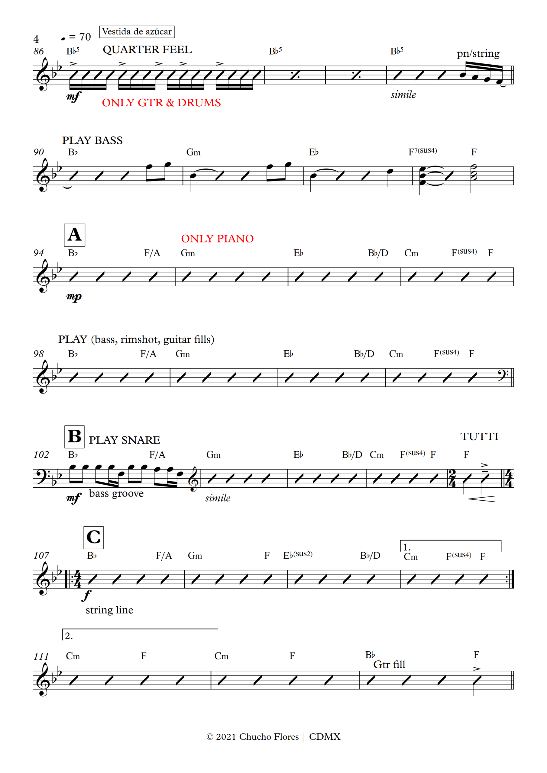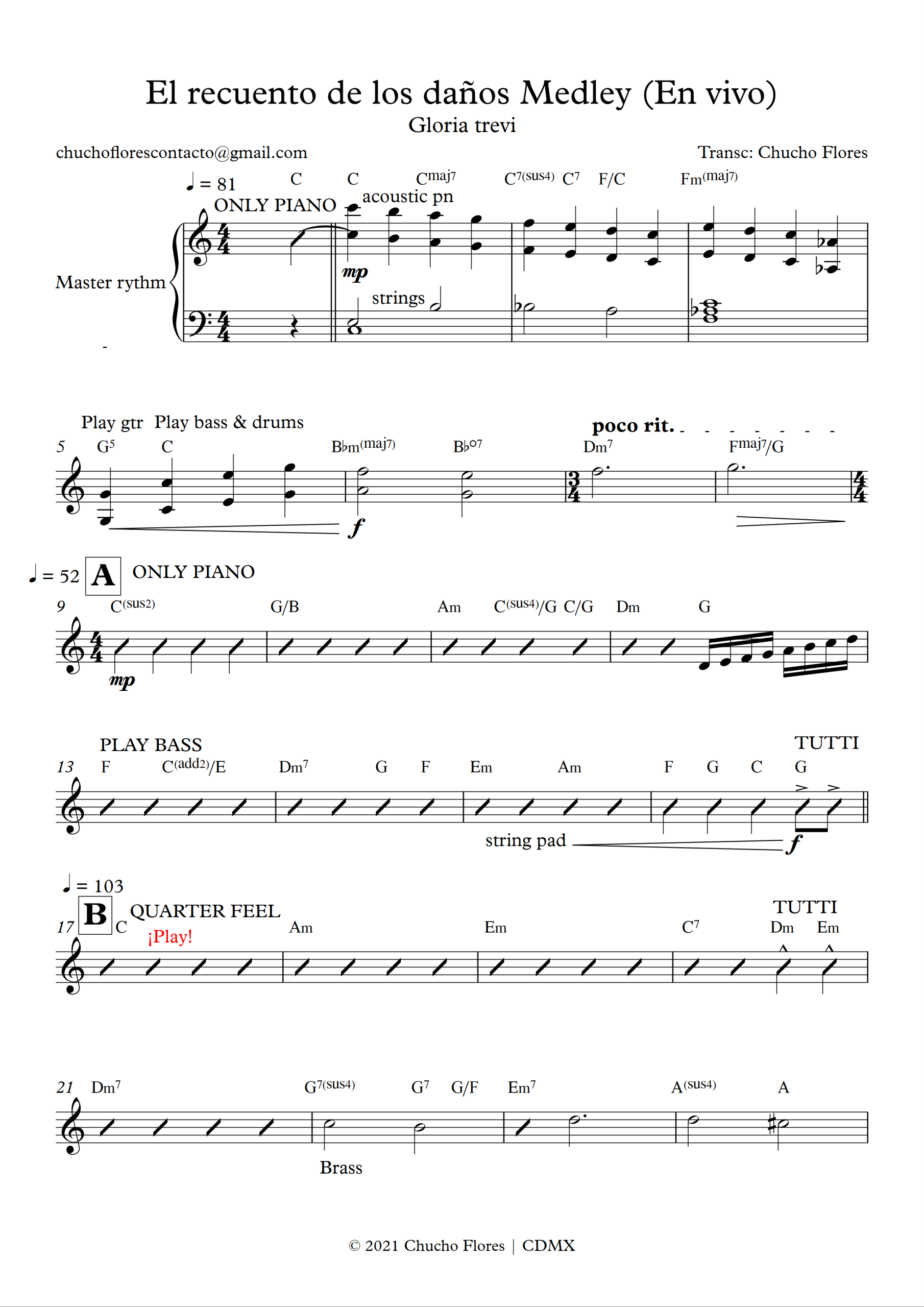 ACORDES + Piano + Guitarra + Cuerdas + Batería + Metales (líneas melódicas) + Indicaciones